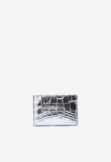 Laminated TF Cardholder in Croc-Embossed Leather